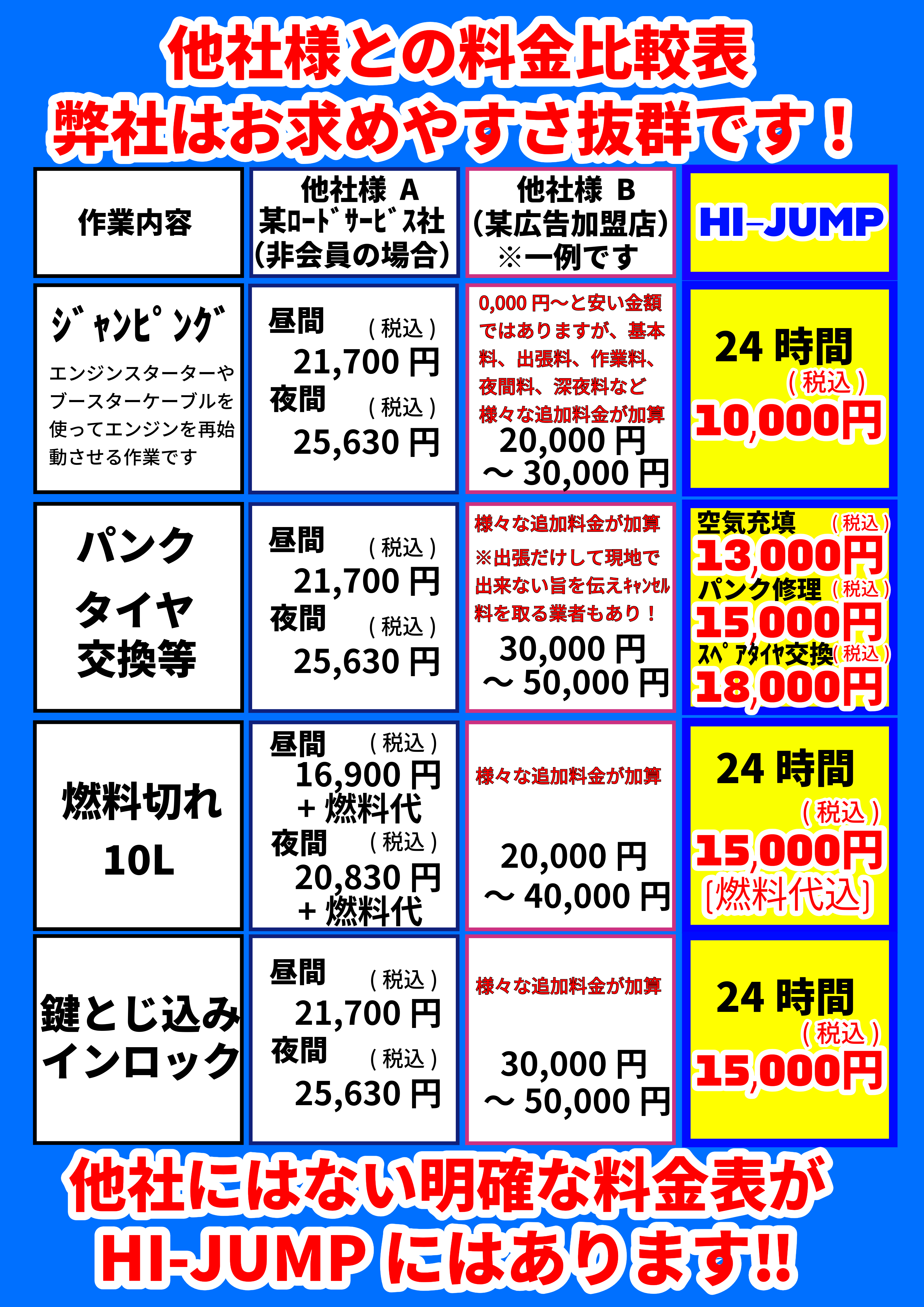 『HI-JUMP』は、突然のバッテリー上がりでお困りのお客様に対し、迅速なジャンピング作業やご希望に応じた出張でのバッテリー交換を提供するサービスです。